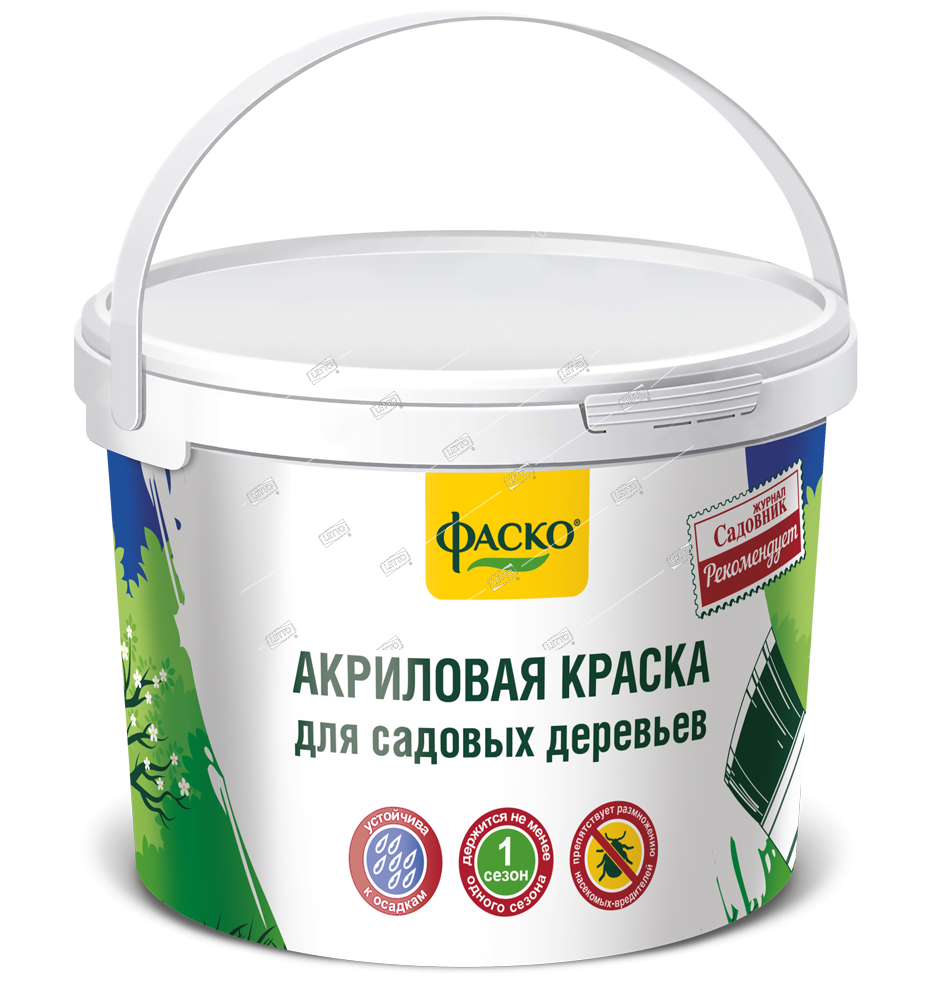 - Краска предназначена для продолжительной защиты стволов и ветвей кустарников, плодовых и декоративных деревьев от повреждений, образующихся при резких колебаниях температуры в зимнее и весеннее время, предохраняет кору деревьев от насекомых, вредителей и патогенной микрофлоры.