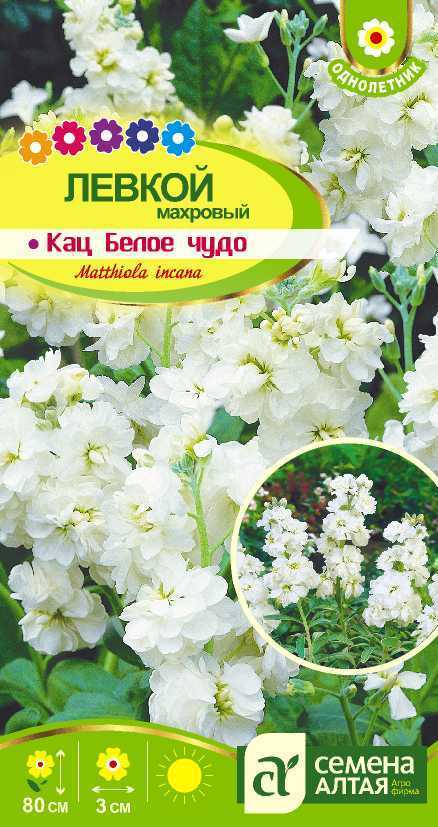 Необычайно красивый сорт, предназначенный, прежде всего, для получения роскошной срезки. Левкой Katz - это неповторимый аромат и длительное цветение. Серия отличается выравненностью по высоте и времени зацветания между различными окрасками, устойчивостью к жарким погодным условиям. Растение образует куст высотой 60-80 см. Крупные махровые цветки чистой белой окраски собраны в кистевидные соцветия и обладают тонким чарующим ароматом. Применяется для высадки в цветники, рабатки, вазоны и контейнеры, для посадки вдоль бордюров, используется при озеленении балконов и для срезки. Растение холодостойкое, предпочитает солнечное местоположение и легкие, нейтральные по кислотности, почвы, не любит застоя воды и длительной засухи. Посев семян проводят в марте-апреле на рассаду в торфяные горшочки, или в апреле-мае в открытый грунт с последующим прореживанием всходов. Глубина заделки семян – 0,5 см. Всходы появляются через 4-5 дней. На постоянное место рассаду высаживают во второй декаде мая.