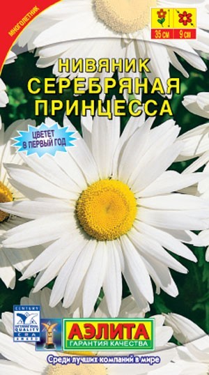 Многолетник Высота 35 см Диаметр 9 см Вы испытаете истинное наслаждение от фейерверка махровых цветков, который представит карликовый нивяник. Пышные и крупные цветки освещенные лучами заходящего солнца, просто великолепны! Что же касается продолжительности цветения, то нивяник не имеет себе равных, на одном растении одновременно цветет до 20 цветков. Даже в пасмурные дни будет дарить хорошее настроение. Посев: семена высевают апрель-май в открытый грунт или весной (февраль-март) на - рассаду. Семенам требуется предварительная стратификация: посеять семена на глубину не более 0,5 см, увлажнить из распылителя, накрыть стеклом и поместить в холодильник (температура 5-70С). Посевы выдерживают в таких условиях в течение 7-10 дней, затем переносят в комнатные условия. Необходимо следить за влажностью посевов и проветриванием. При температуре 18-200С всходы появляются на 10-14 день. Сеянцы пикируют в фазе 2-3 пар настоящих листьев. Если нет прорастания - повторить методику холод-тепло в той же последовательности! В открытый грунт рассаду высаживают в конце мая с расстоянием между растениями 50 см. Если же посев производился в грунт, то растения на постоянное место высаживают весной следующего года после зимовки в закрытом грунте или на подоконнике дома. Уход: светолюбива, предпочитает защищенное от ветра место (перед деревьями, около стен). Любит плодородные, умеренно-влажные известковые почвы. Весной под кусты подсыпают компост. В период до наступления массового цветения проводят подкормки комплексными минеральными удобрениями с интервалом 10-14 дней.