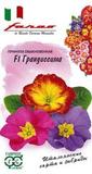 Травянистая многолетняя раннецветущая смесь примул с невероятно крупными цветками фантастических двух- и трёхцветных окрасок итальянской серии «Грандиссима». Эти гибриды по праву считаются лучшими для производителей качественных примул. Образуют компактный и очень выровненный кустик высотой 12-15 см усыпанный яркими цветками диаметром 6-7 (до 9!) см. Хорошо растут в полутенистых местах, на удобренной, достаточно увлажненной почве. Легко переносят пересадку даже во время цветения. Семена высевают в открытый грунт осенью или весной после стратификации во влажном песке при низкой положительной температуре, в течение 3-4 недель. При температуре почвы +10°С всходы появляются через 25 дней. На постоянное место высаживают весной или осенью второго года. Высаживать примулу надо с таким расчетом, чтобы посадки были сомкнутыми, а между розетками листьев не было открытого пространства. Молодые растения зацветают на второй год. Цветение продолжительное, с апреля по июль. Используют для посадки в бордюры, каменные горки, а также для зимней выгонки. Растение, пересаженное осенью в горшок, зацветает в комнатных условиях в марте-апреле.