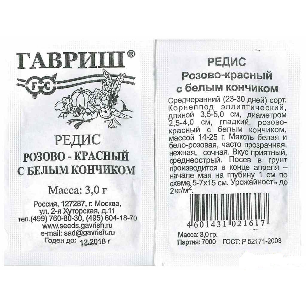 Ранний сорт. Период от всходов до технической спелости 23-27 дней. Пригоден для выращивания в открытом и защищенном грунте. Корнеплод эллиптический, гладкий, розово-красный с белым кончиком, массой 18-20 г. Мякоть белая, часто прозрачная, нежная, сочная. Вкус приятный, среднеострый. Сорт относительно устойчив к стрелкованию. Урожайность до кг/м2.